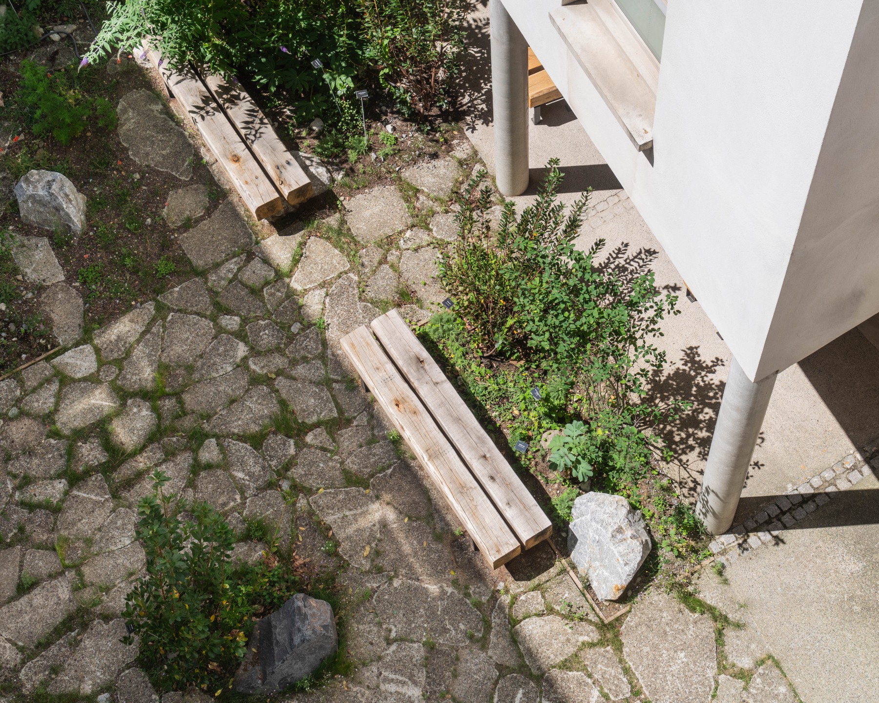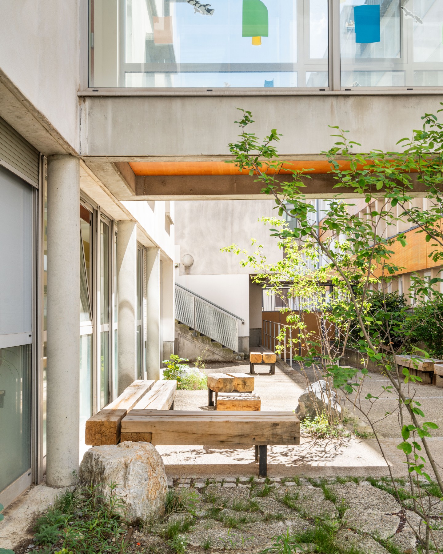 Des mobiliers adossés aux espaces plantés ©Ludovic Maillard
