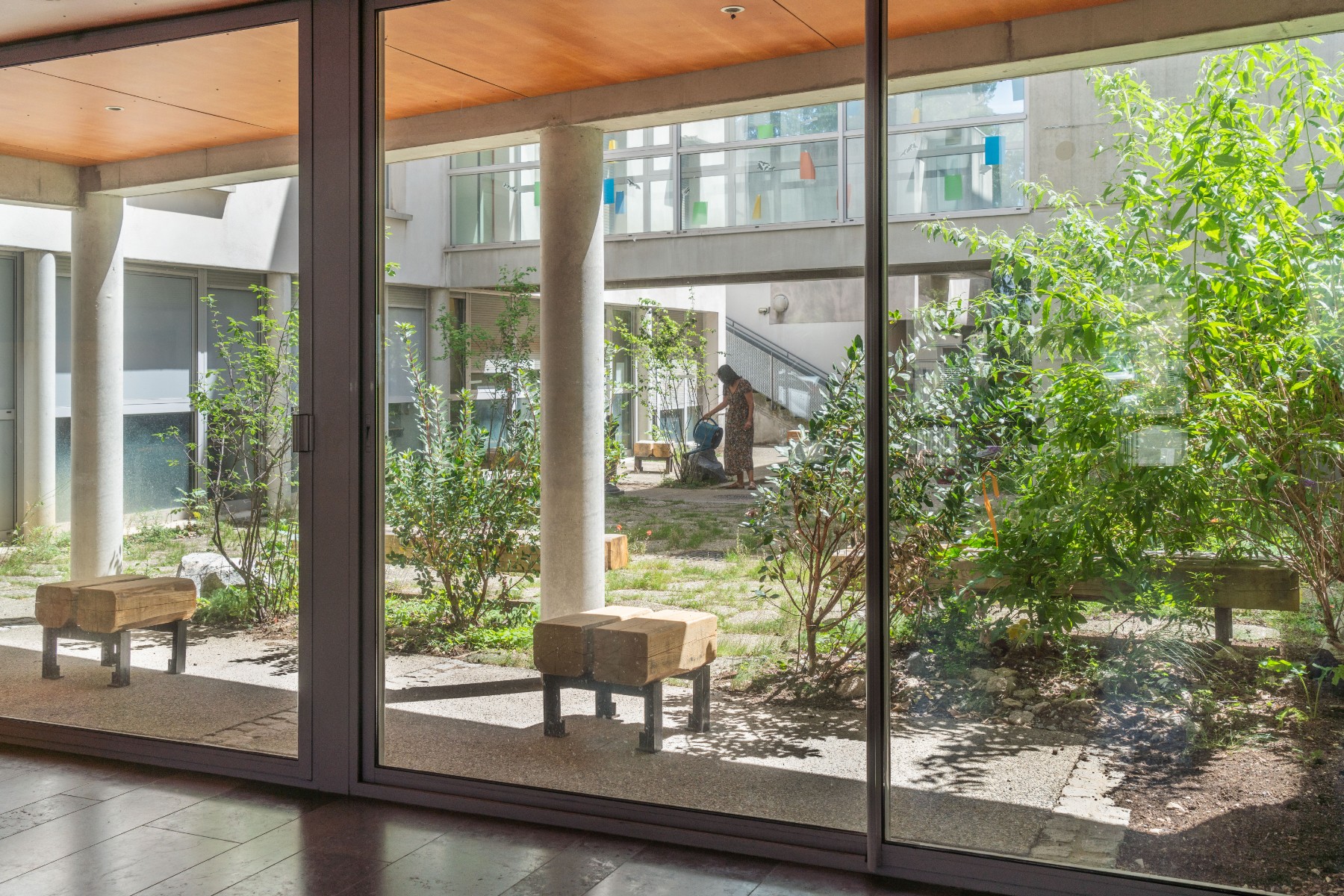 Depuis le hall d'accueil, vue sur l'espace de détente ©Ludovic Maillard